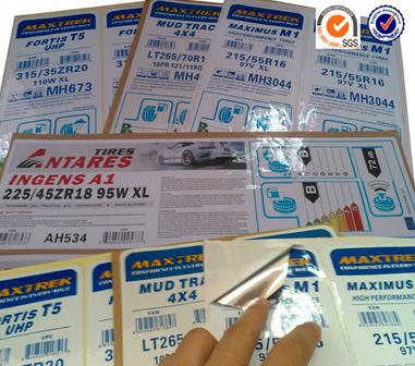 卷筒標簽,顧名思義是標簽做成卷筒形式(或叫盤帶標),做成卷筒形式的標簽其中有個重要的目的是為了方便成卷打印產品型號、出廠日期、檢驗信息等。如果選用特殊的底膠,此類盤帶標就可用于自動貼標機,用于自動化生產過程中。 輪胎生產過程一般都須經由加硫處理,要用一般標簽來貼很困難,必須使用橡膠系類的粘著劑,才能貼附于橡膠等凹凸不平的表面上。